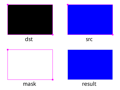 For a fully opaque mask, this reduces to the original Porter-Duff formula: dst = src OP dst.
