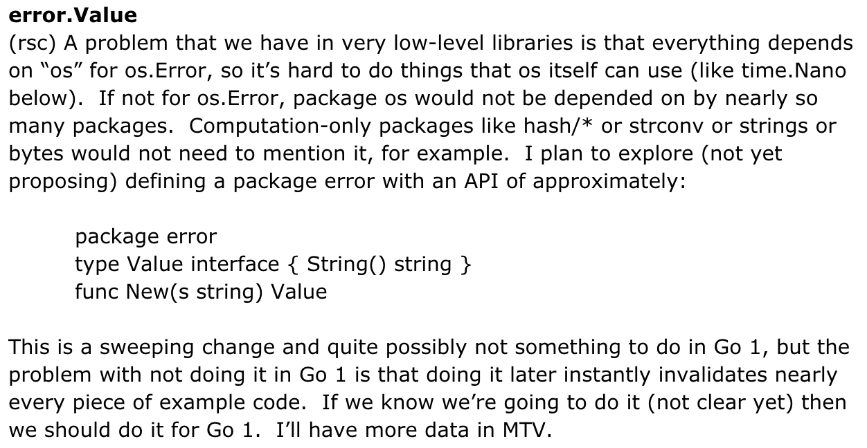 }Before the Go 1 meeting, Russ raised the issue in the design document: