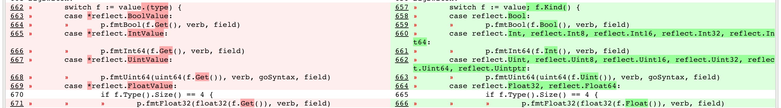 The fmt package was written long before reflect.